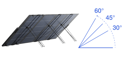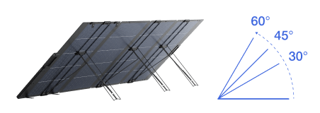 Der integrierte, faltbare Ständer bietet ein praktisches und kompaktes Design. Verstellbar auf 30°, 45° und 60°, ideal für die meisten Gebiete in hohen Breitengraden. Verstellbarer Ständer mit 30°, 45° und 60° Positionen