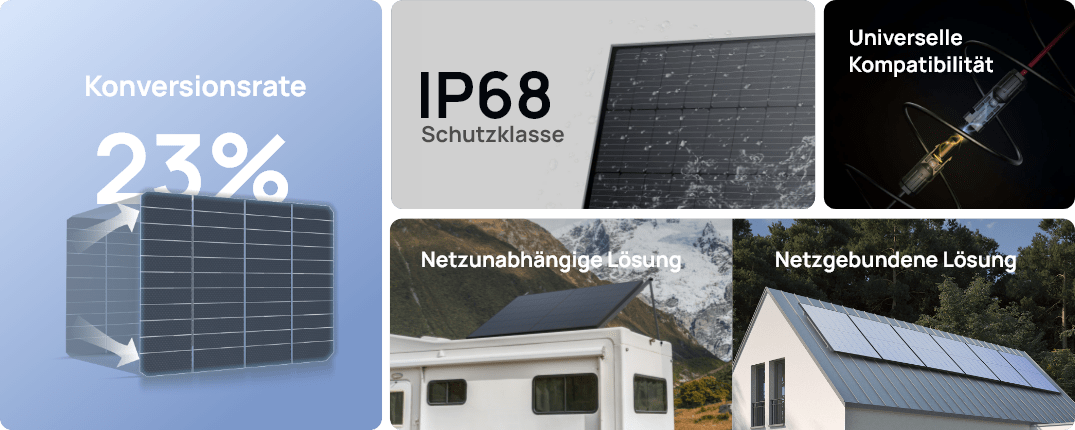 Mit diesem hochleistungsfähigen Solarpanel für sowohl netzgebundene als auch netzunabhängige Solaranlagen können Sie Energie für Stromausfälle speichern, Energierechnungen senken oder ein netzunabhängiges Haus mit Strom versorgen.