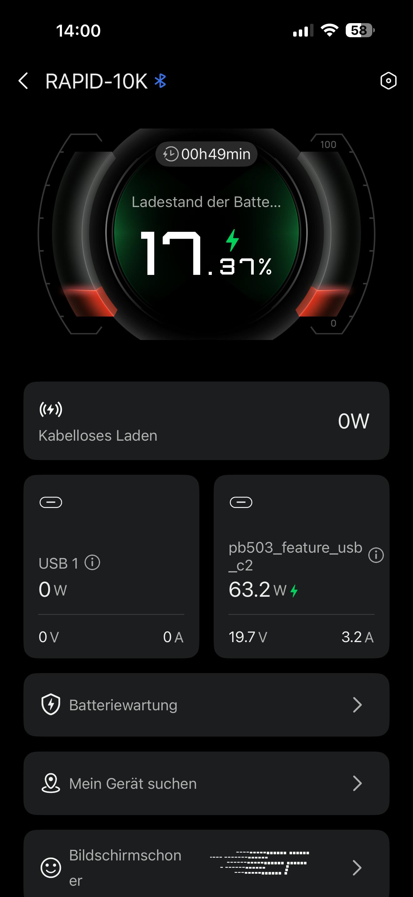 RAPID verfügt über ein Energiemanagementsystem, das die Gesundheit der Batterie erhält. Schalten Sie den 'Optimierten Lademodus' in der App ein, um die Lebensdauer Ihrer Batterie zu verlängern.