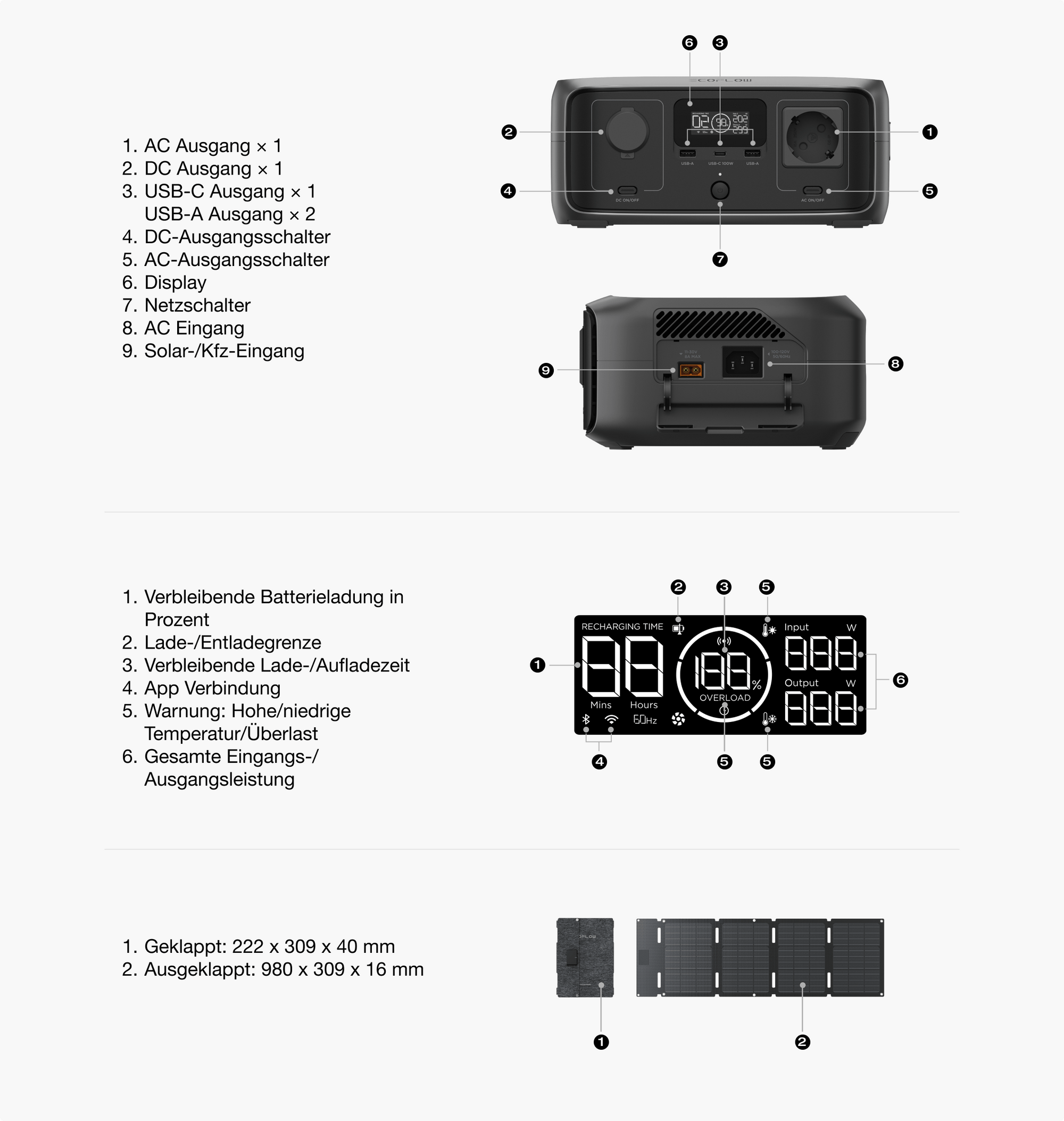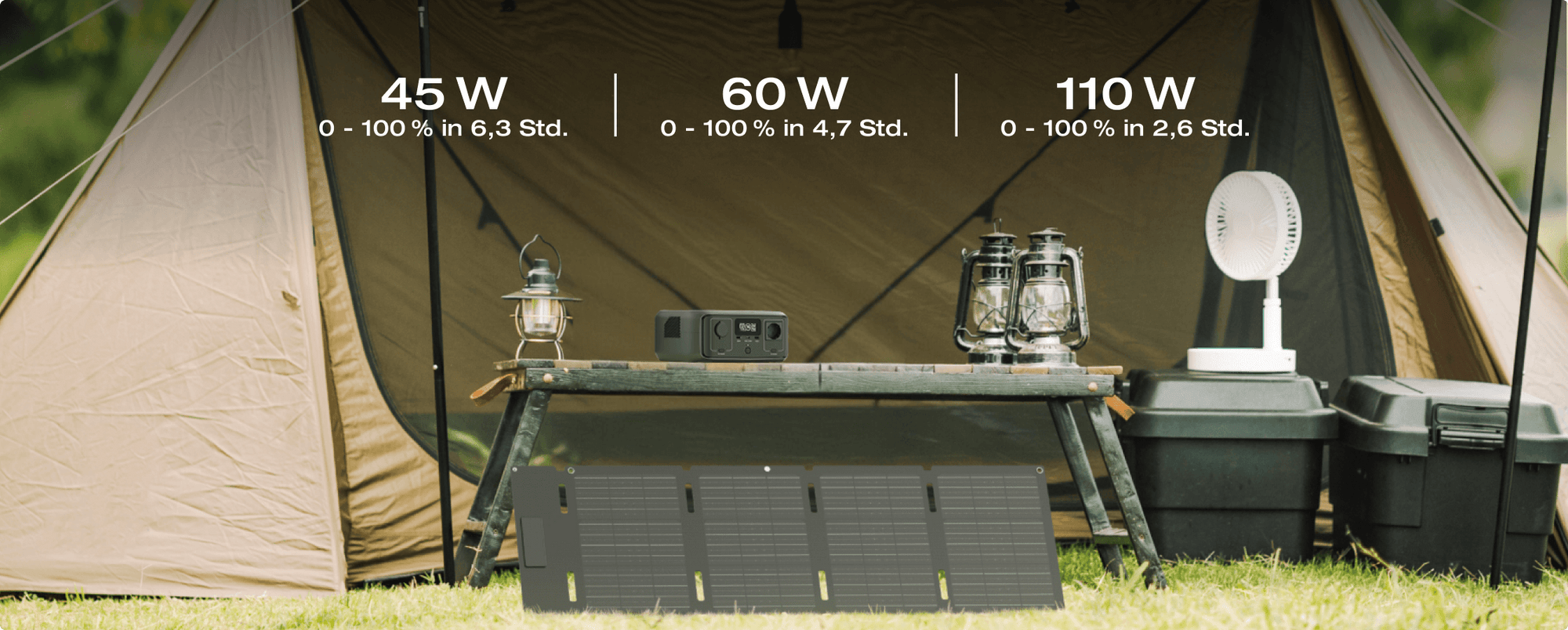 • Bis zu 110 W Solareingang, 0 - 100 % in nur 2,6 Std.