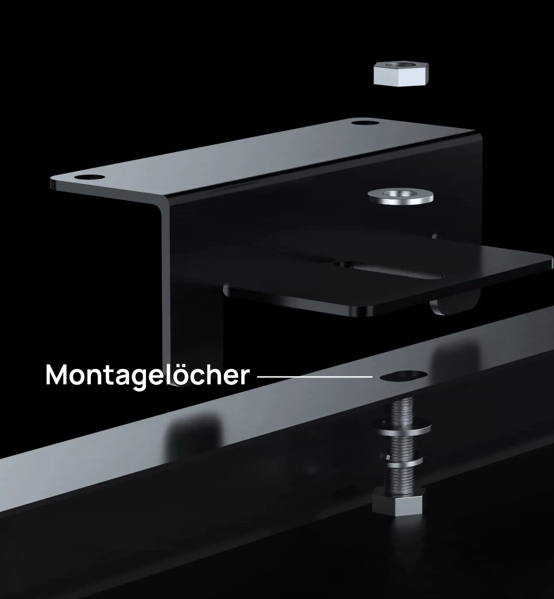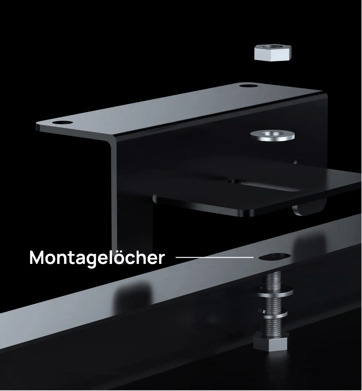 Sichere Montage durch vorgebohrte Längslöcher am Solarpanel