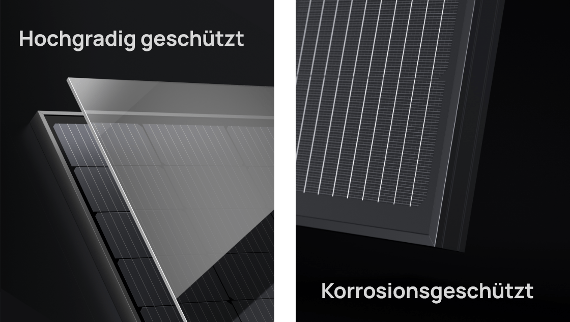 Die Betriebstemperatur des Solarpanel beträgt -20 °C bis +85 °C (-4 °F bis +185 °F). Bitte lesen Sie das Produkthandbuch vor der Verwendung sorgfältig durch. Solarpanel bestehen aus monokristallinen Silizium-Wafern. Achten Sie darauf, dass die Solarpanel während der Installation und der Nutzung nicht auf den Boden geschlagen, betreten oder von Fremdkörpern getroffen werden, und setzen Sie sich nicht auf ihre Oberfläche, weil es dabei zu Beschädigungen der monokristallinen Silizium-Wafer kommen kann, was sich auf deren Verwendung auswirkt. Gewaltsame Beschädigungen sind von der kostenfreien Garantie nicht abgedeckt.
