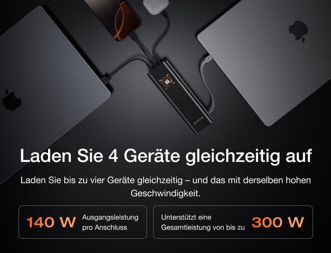 Stellen Sie sicher, dass die angeschlossenen Geräte Schnellladeprotokolle unterstützen; andernfalls wird kein schnelles Laden erreicht.