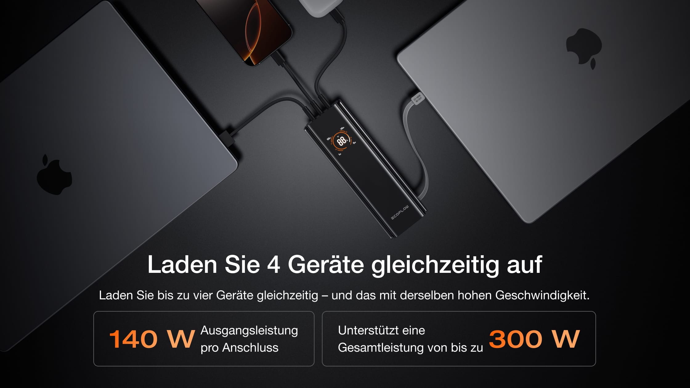 Pass-Through-Laden wird unterstützt – abhängig vom Strombedarf der angeschlossenen Geräte.