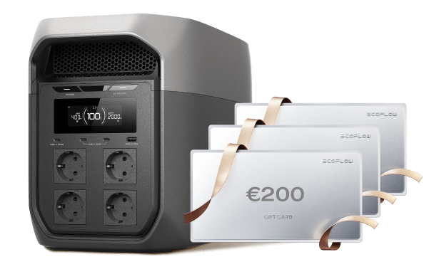 1 Gewinner erhält eine DELTA 3 Max tragbare Powerstation und 3 weitere Gewinner erhalten je eine Geschenkkarte im Wert von 200 €.