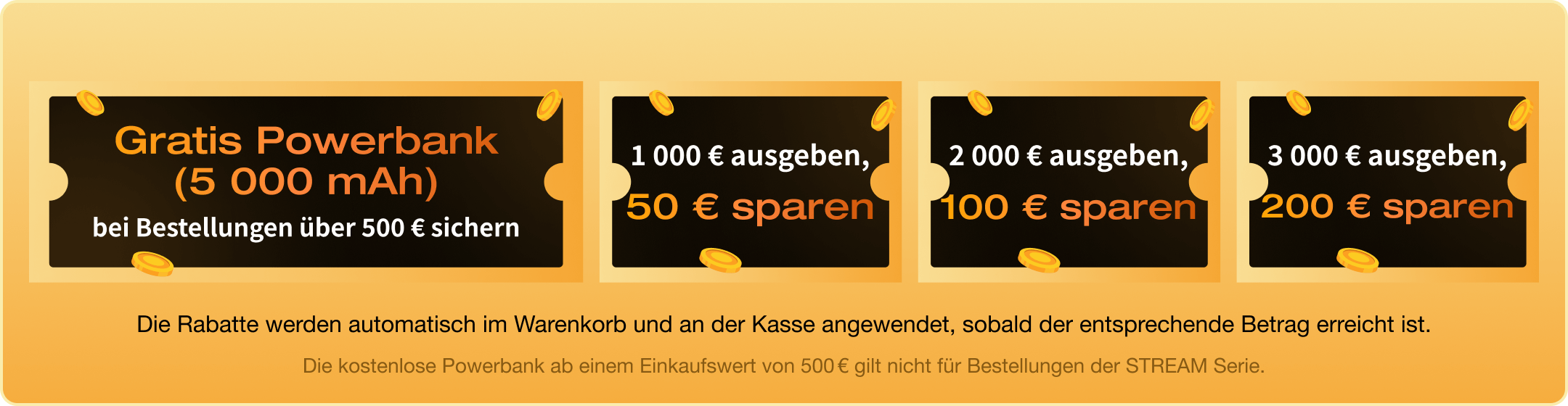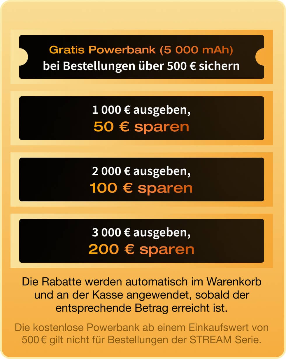 Exklusives Launch Angebot: Erhalten Sie ein 500 W Batterieladegerät gratis (Wert 299 €)
