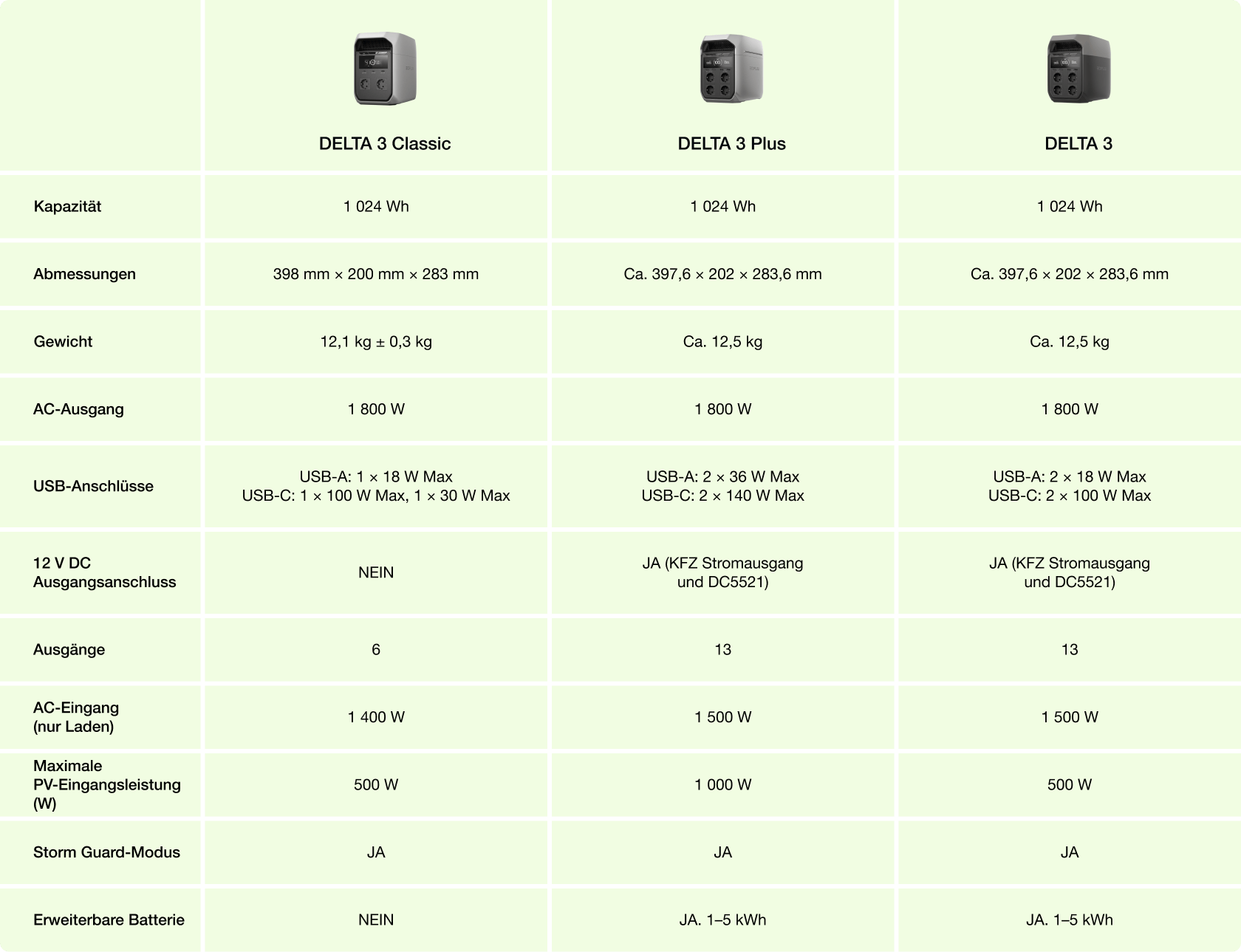 Preis & Gewinnerbekanntgabe Preis: 1 Gewinner erhält 1 × EcoFlow DELTA 3 Classic tragbare Powerstation Bekanntgabedatum: 16. März 2026" Hinweise zur Verlosung 1. Kein Kauf erforderlich: Die Teilnahme ist kostenlos. Ein Kauf erhöht nicht die Gewinnchancen. 2. Eine Teilnahme pro Person: Jede Person darf nur einmal mit einer E-Mail-Adresse teilnehmen. Mehrfacheinträge über mehrere E-Mail- oder Social-Media-Konten führen zum Ausschluss. Die Gewinner werden per Zufall aus allen gültigen Einsendungen ausgewählt. 3. Endgültige Auswahl: Die Entscheidung von EcoFlow ist endgültig und verbindlich. Es wird keine Korrespondenz geführt. 4. Benachrichtigung: Die Gewinner werden innerhalb von 7 Werktagen nach jeder Ziehung per E-Mail benachrichtigt. 5. Versand der Preise: Die Auslieferung erfolgt innerhalb von 30 Tagen nach Bestätigung der Teilnahmeberechtigung. 6. Einlösung: Die Gewinner müssen innerhalb von 7 Werktagen auf die Benachrichtigung reagieren. Wenn keine Rückmeldung erfolgt, führt dies zur Disqualifikation und der Gewinn wird neu vergeben." 50 % RABATT auf exklusive DELTA 3 Classic Add-ons 1. Dauer: Beginn: 16. März 2026, 09:00 Uhr MEZ Ende: 15. April 2026, 09:00 Uhr MEZ 2. Teilnehmende Produkte: Kaufen Sie die DELTA 3 Classic und erhalten Sie 50 % Rabatt auf: EcoFlow 500 W Batterieladegerät EcoFlow NextGen 160 W Tragbares Solarpanel 3. Die auf den Produktseiten angezeigten Preise spiegeln den angewendeten Rabatt wider und sind die Endverkaufspreise. 4. Es gibt keinen Grund, die Artikel zum vollen Preis zu stornieren oder zurückzugeben. Sie müssen die 50 % rabattierten Produkte gleichzeitig stornieren und zurückgeben. Wenn Sie die Zubehörteile behalten möchten, werden Ihnen die Originalpreise berechnet. 5. Wenn Schäden am Zubehör auftreten, ist der Verbraucher verpflichtet, den ursprünglichen Preis des Zubehörs zu zahlen." Allgemeine Bedingungen 1. Bitte wenden Sie sich an support.eu@ecoflow.com, wenn während der Aktion Probleme auftreten. 2. Soweit gesetzlich zulässig, kann EcoFlow diese Bedingungen jederzeit ändern oder die Aktion beenden. Bei Betrug oder Missbrauch behält sich EcoFlow das Recht vor, Teilnehmende auszuschließen. 3. Teilnehmende an der Aktion erklären sich mit diesen Allgemeinen Geschäftsbedingungen einverstanden und erkennen an, dass die Entscheidungen von EcoFlow endgültig und verbindlich sind. Korrespondenz oder Einsprüche werden nicht berücksichtigt. EcoFlow behält sich das Recht vor, die endgültige Auslegung dieser Aktion vorzunehmen. 4. Während des Aktionszeitraums müssen alle Bestellungen dem Kaufvertrag und der Rückgaberichtlinie von EcoFlow entsprechen. 5. Die Werbeaktion gilt nicht für Bestellungen von Großhändlern oder Distributoren. 6. Jegliches unbefugte oder betrügerische Verhalten führt zum Ausschluss von der Teilnahme. 7. Teilnehmende müssen sich an alle geltenden Gesetze und Vorschriften halten. 8. EcoFlow behält sich das Recht vor, die Aktion jederzeit zu beenden, zu ändern oder zu widerrufen. Alle Änderungen werden auf der offiziellen EcoFlow Webseite bekannt gegeben. 9. Sämtliche Preise und Geschenke im Rahmen dieser Aktion sind nur in begrenzter Menge verfügbar und werden nach dem Prinzip „Wer zuerst kommt, mahlt zuerst“ vergeben. Alle hierin nicht behandelten Angelegenheiten werden gemäß der endgültigen Auslegung von EcoFlow behandelt. 10. EcoFlow übernimmt keine Verantwortung für Verzögerungen, die aus irgendeinem Grund auftreten, einschließlich, aber nicht beschränkt auf Übertragungsfehler im Netz. 11. EcoFlow übernimmt keine Verantwortung für direkte oder indirekte Verluste oder Schäden, die einer Partei, einschließlich der Teilnehmenden, im Zusammenhang mit oder aufgrund von Handlungen, Unterlassungen oder Umständen entstehen, die mit dieser Aktion in Verbindung stehen. 12. Teilnehmende erklären sich damit einverstanden, EcoFlow von sämtlichen Haftungen und Ansprüchen freizustellen, einschließlich Vertragsbruch, unerlaubter Handlung, Fahrlässigkeit oder sonstiger rechtlicher Ansprüche, die in irgendeiner Weise aus oder im Zusammenhang mit dieser Aktion oder der Teilnahme der Person daran entstehen. 13. Es kann vorkommen, dass wir bestimmte Bestellungen nicht annehmen können oder stornieren müssen. Wir behalten uns das Recht vor, nach eigenem Ermessen Bestellungen aus beliebigen Gründen abzulehnen oder zu stornieren. Wir übernehmen keine Verantwortung für Ungenauigkeiten oder Fehler.
