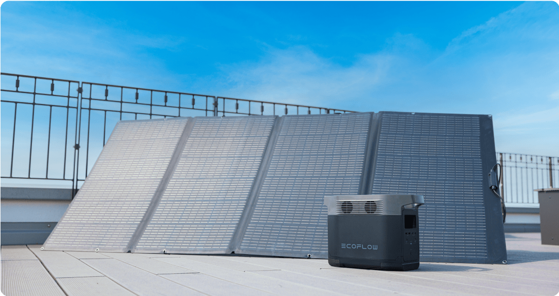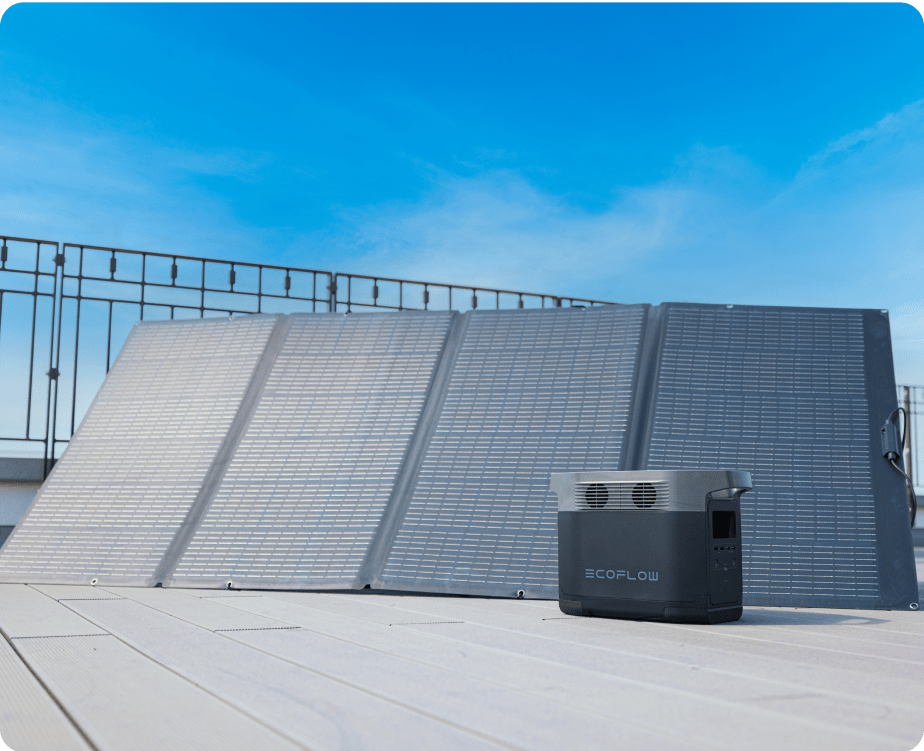 Mit unseren Solarpanels erzeugen wir ganz einfach Strom aus Sonnenlicht, der dann in Wechselstrom umgewandelt wird. Nun brauchen wir nur noch eine EcoFlow-Powerstation unserer Wahl, die den Strom verlässlich für Notsituationen speichert – und fertig ist unser modernes Notstromaggregat.