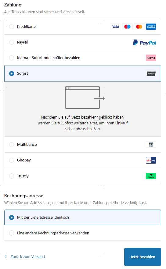 - Jetzt bezahlen: Bezahlen Sie Ihren Einkauf sofort per Lastschrift, Kreditkarte oder Banküberweisung.