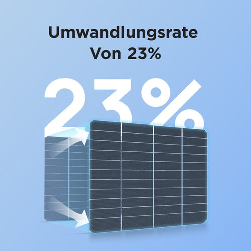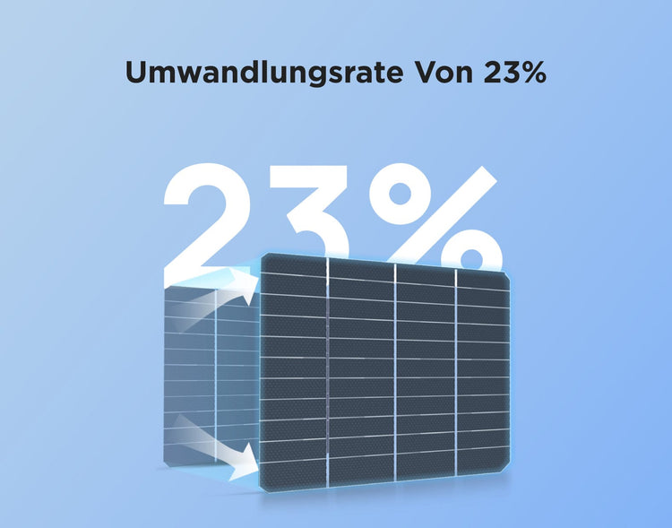 Unsere starren Solarpanels bestehen aus hocheffizienten monokristallinen Solarzellen. Diese wandeln bis zu 23 % der Sonneneinstrahlung in nutzbare Energie um. Die Solarzellen sind außerdem durch einen robusten, korrosionsbeständigen Aluminiumrahmen geschützt. Damit eignen sie sich perfekt für den Einsatz im Freien.
