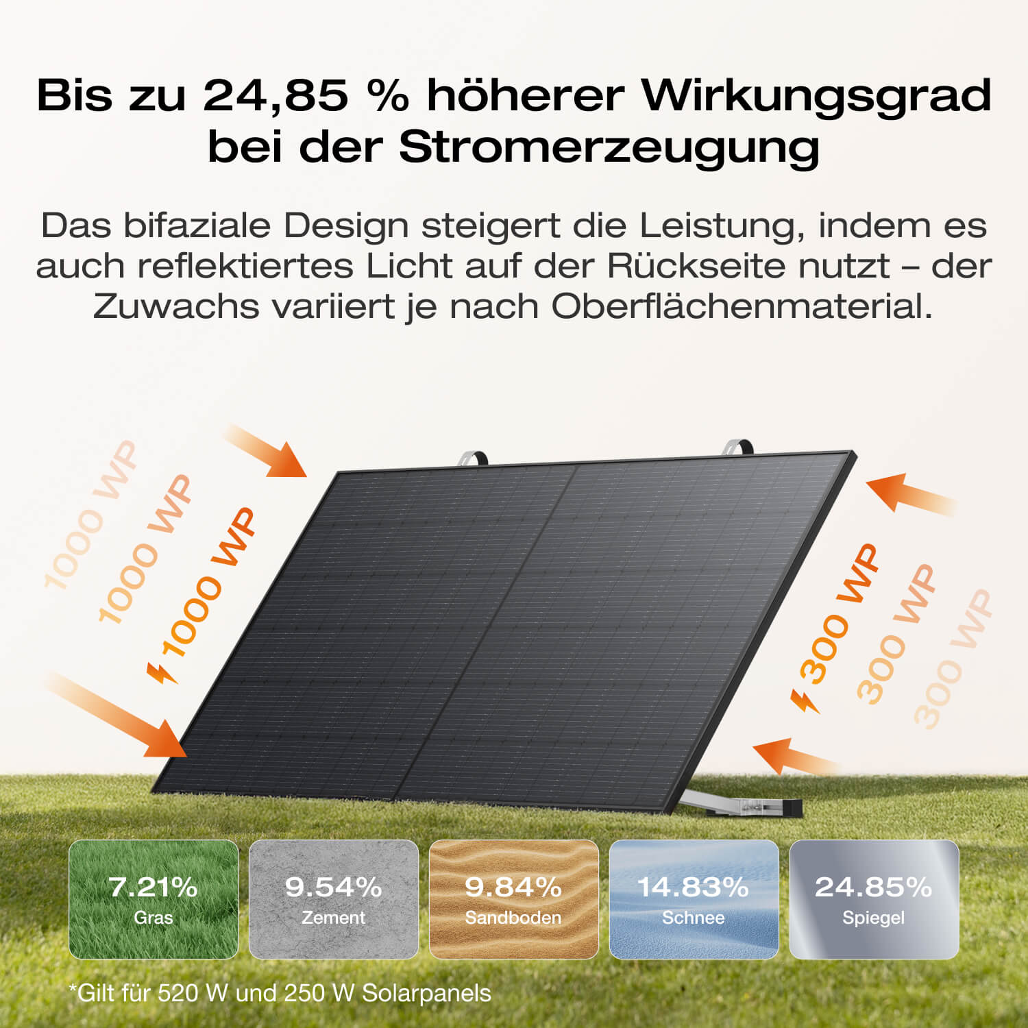 Bei einer Gesamt-PV-Leistung > 2 000 Wp können zusätzliche Melde-, Zähler- oder Genehmigungspflichten gegenüber Ihrem Netzbetreiber entstehen. Bitte informieren Sie sich vor der Inbetriebnahme über die für Ihren Standort geltenden Vorschriften.