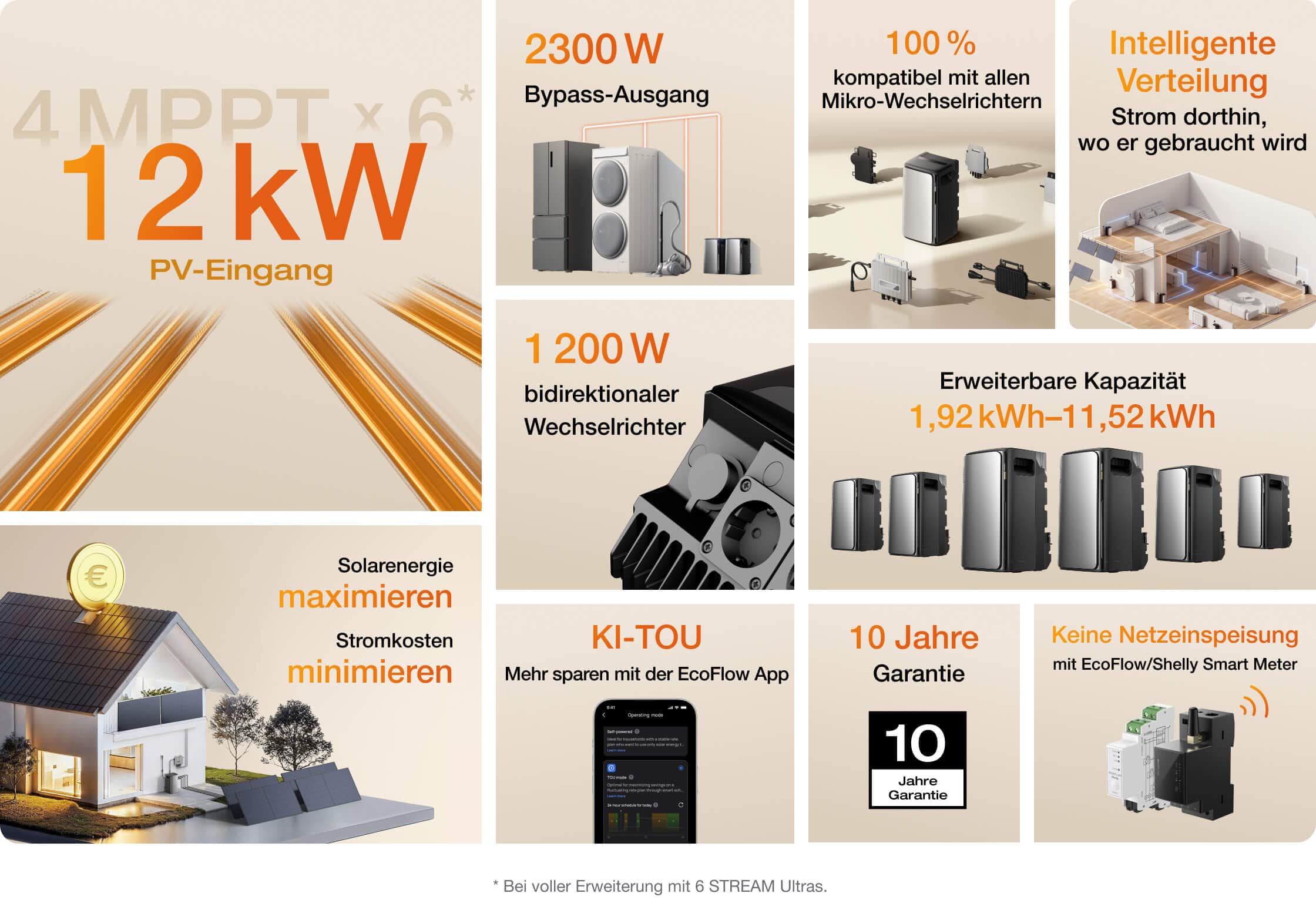 4. Die maximale Kapazität beträgt 6 Einheiten, erweiterbar auf bis zu 11,92 kWh mit EcoFlow STREAM Ultra oder EcoFlow STREAM AC Pro.