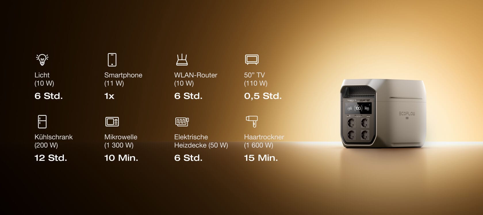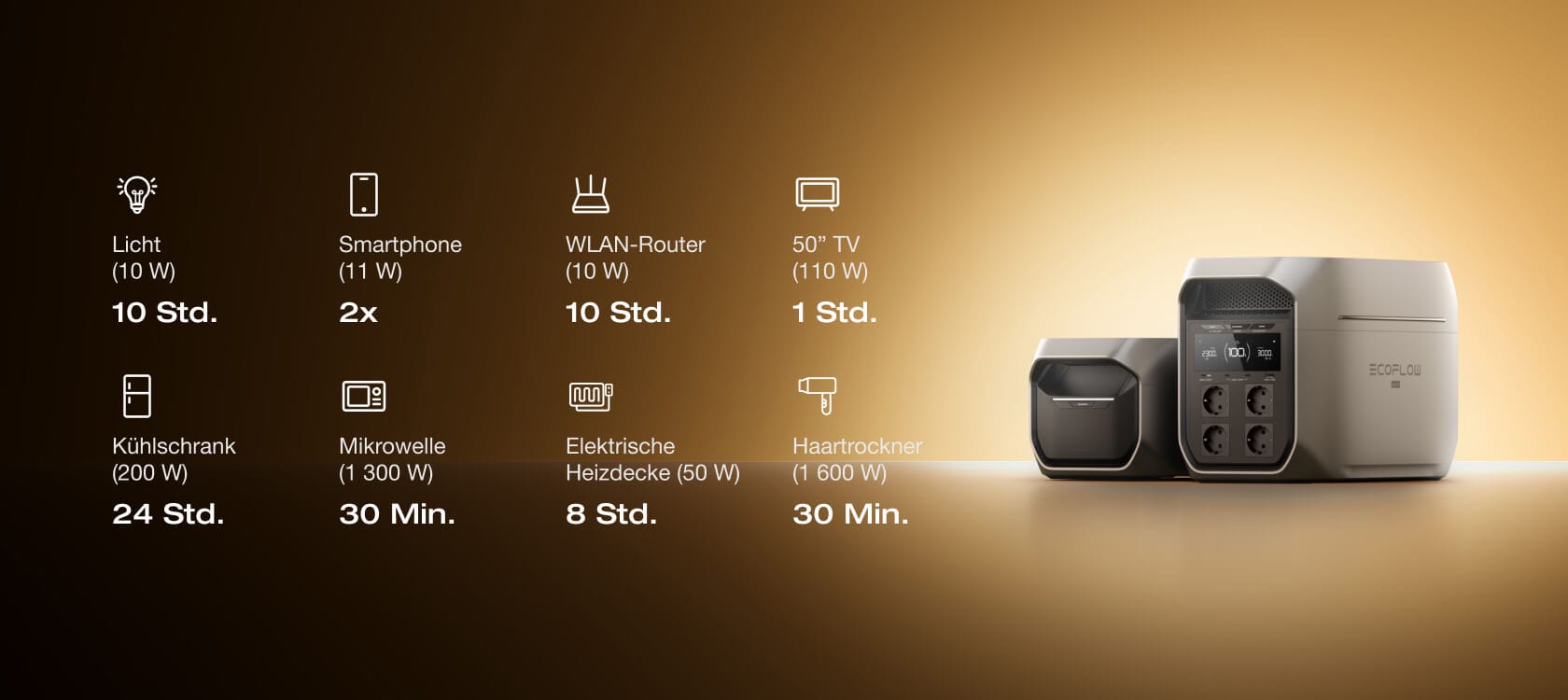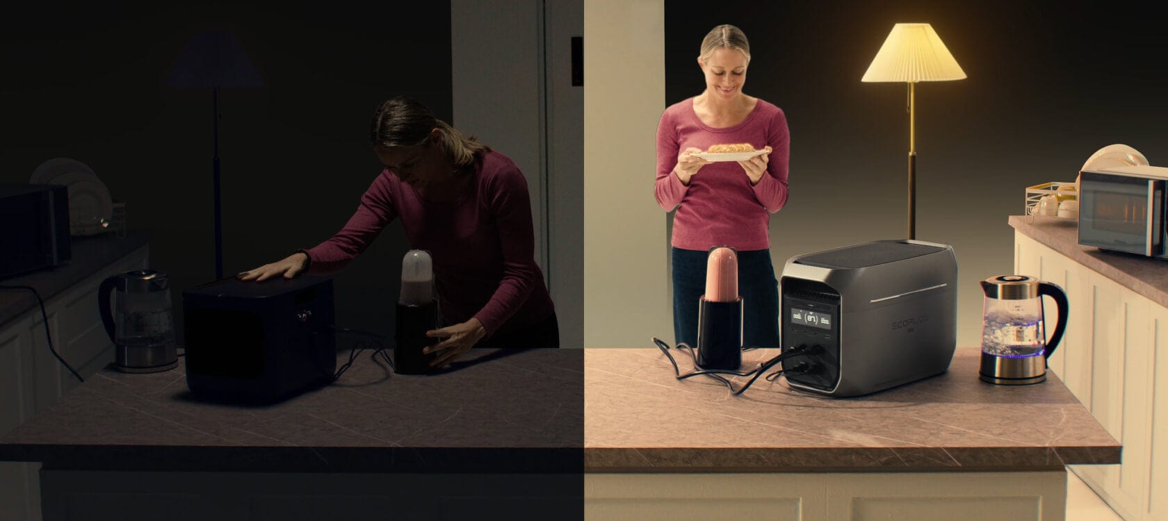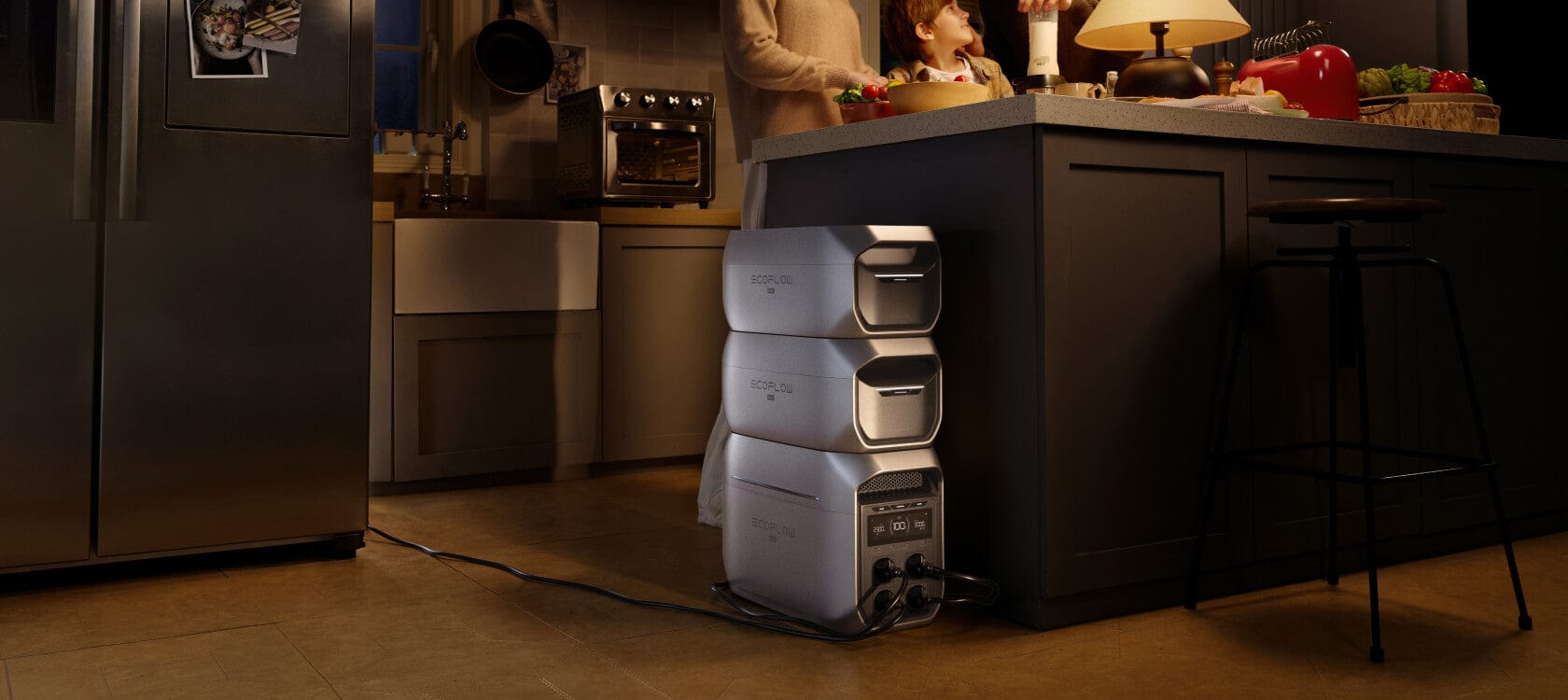 DELTA 3 Max Plus folgt App-Voreinstellungen während Stromausfällen — Licht aus, Kühlschrank läuft weiter. Morgens frische Lebensmittel und noch genügend Energie – als wäre nichts passiert.