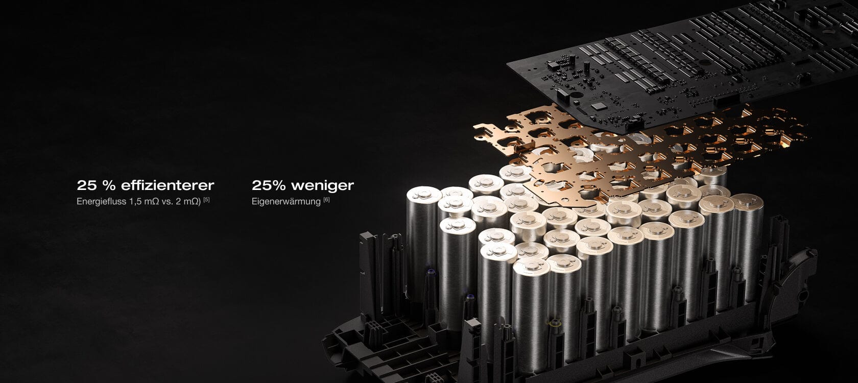 5. Bezieht sich auf den Innenwiderstand der EF Full-Tab LFP-Zellen von 1,5 mΩ, was 25 % niedriger ist als der Innenwiderstand von 2 mΩ der vorherigen EF #C33-Batteriezelle.