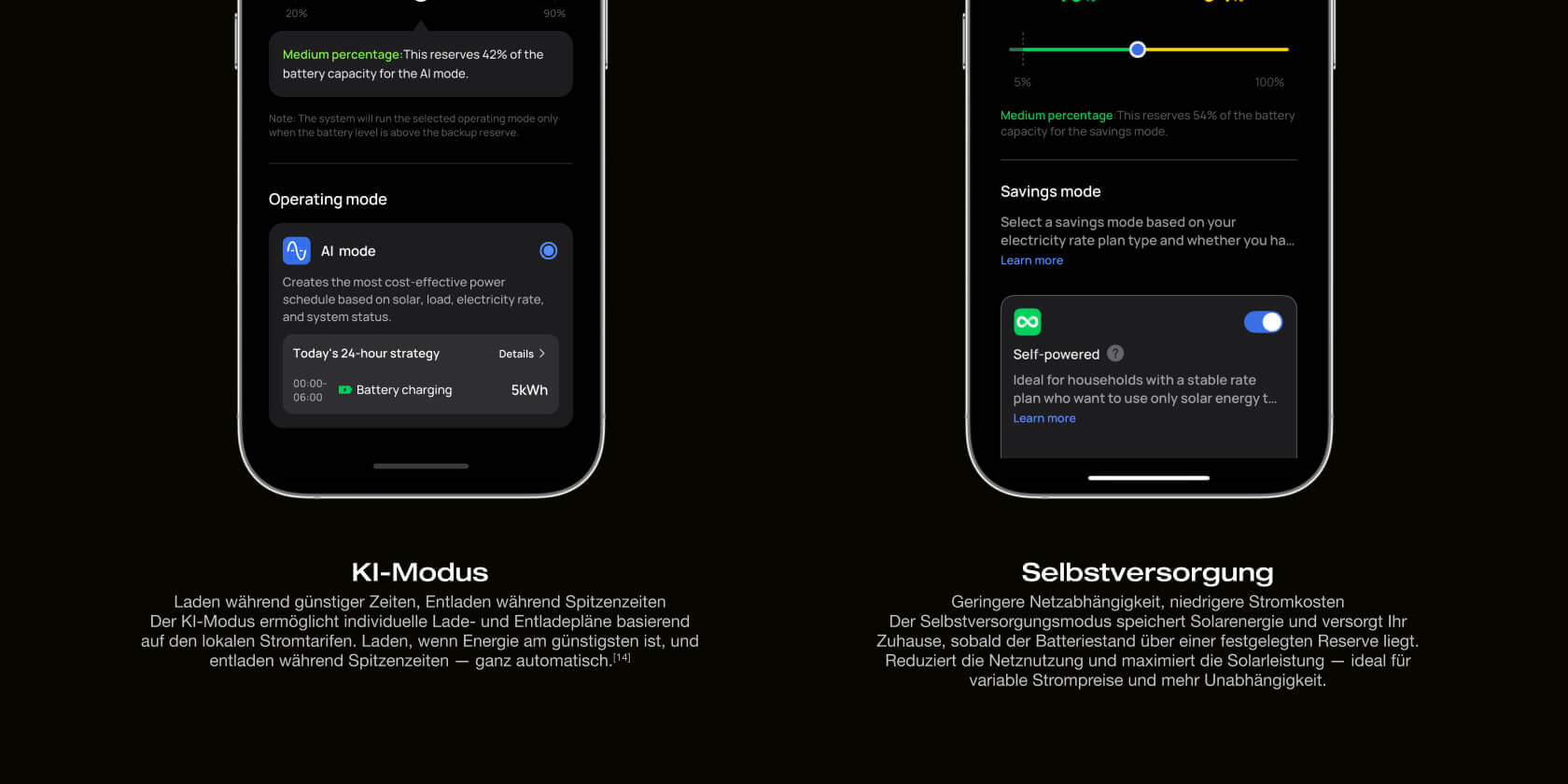 Smart Power Reserve | Legen Sie den gewünschten Batteriewert (%) fest, um nicht essentielle Lasten automatisch abzuschalten.