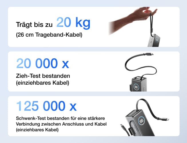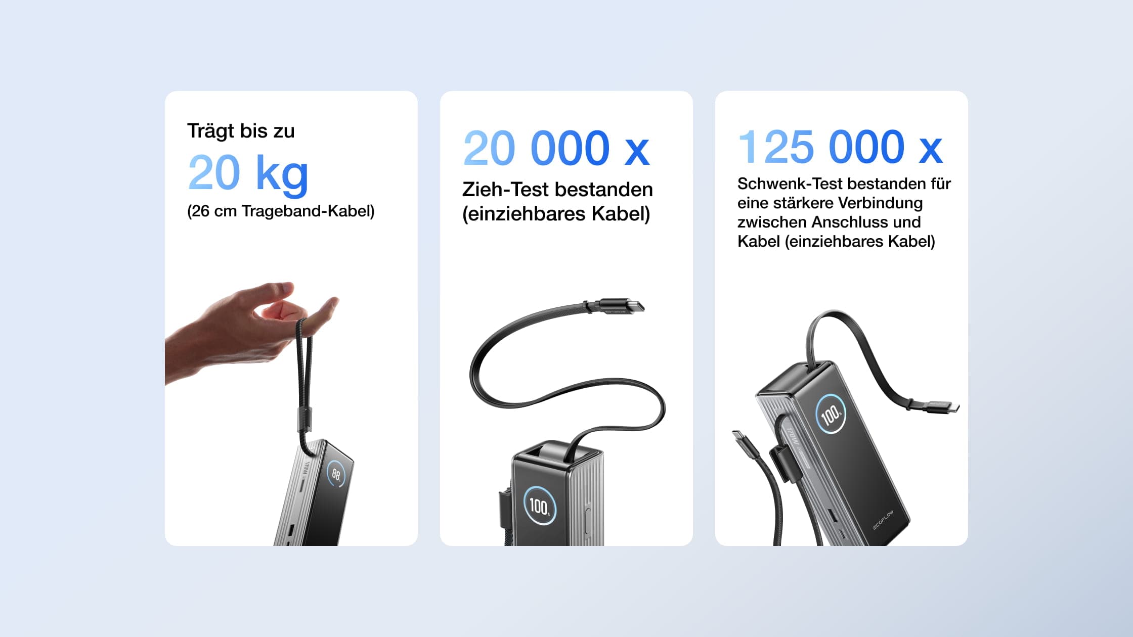 1 Ausziehbares Kabel (Typ-C Anschluss): 100 W