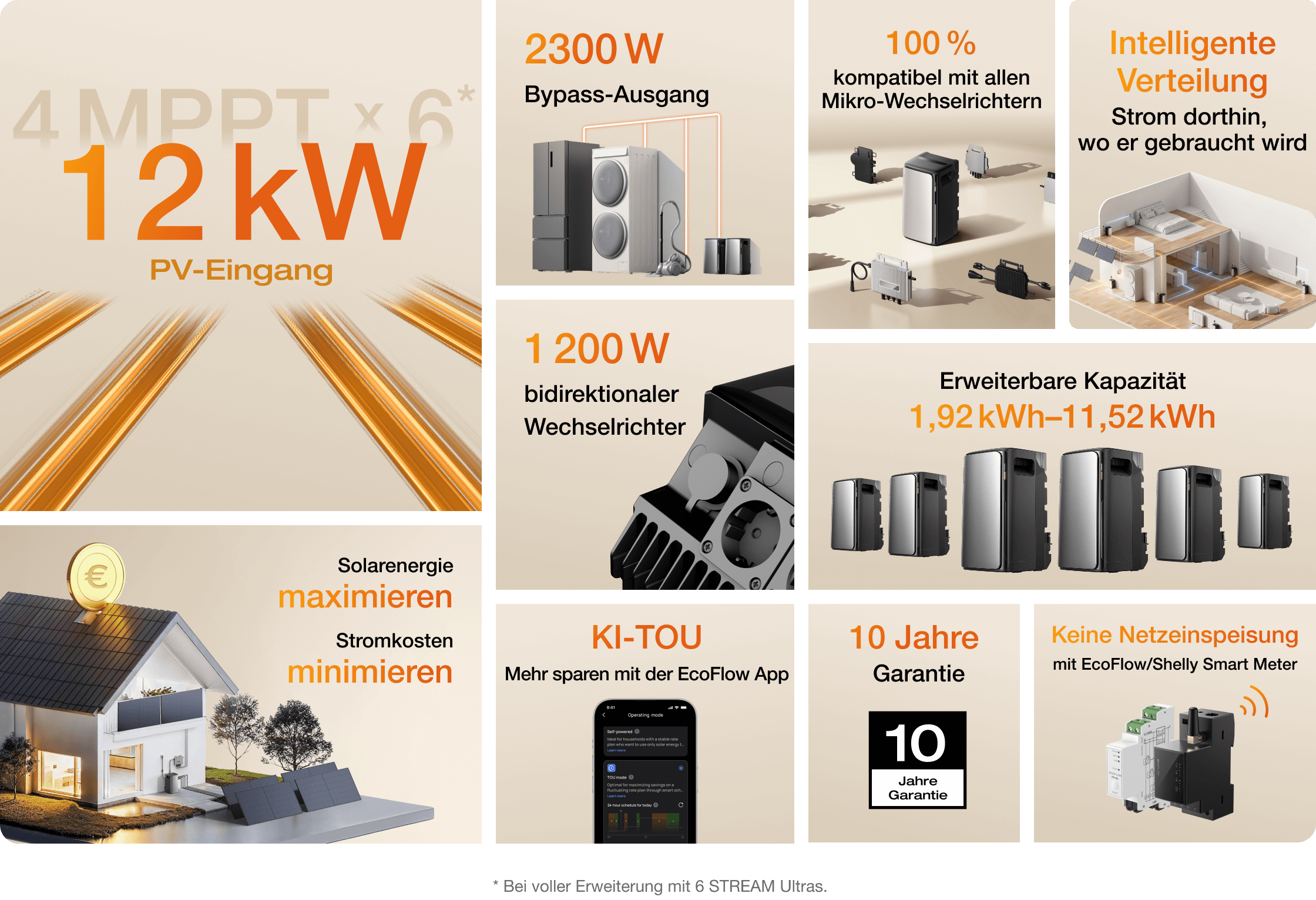4. Die maximale Kapazität beträgt 6 Einheiten, erweiterbar auf bis zu 11,92 kWh mit EcoFlow STREAM Ultra oder EcoFlow STREAM AC Pro.