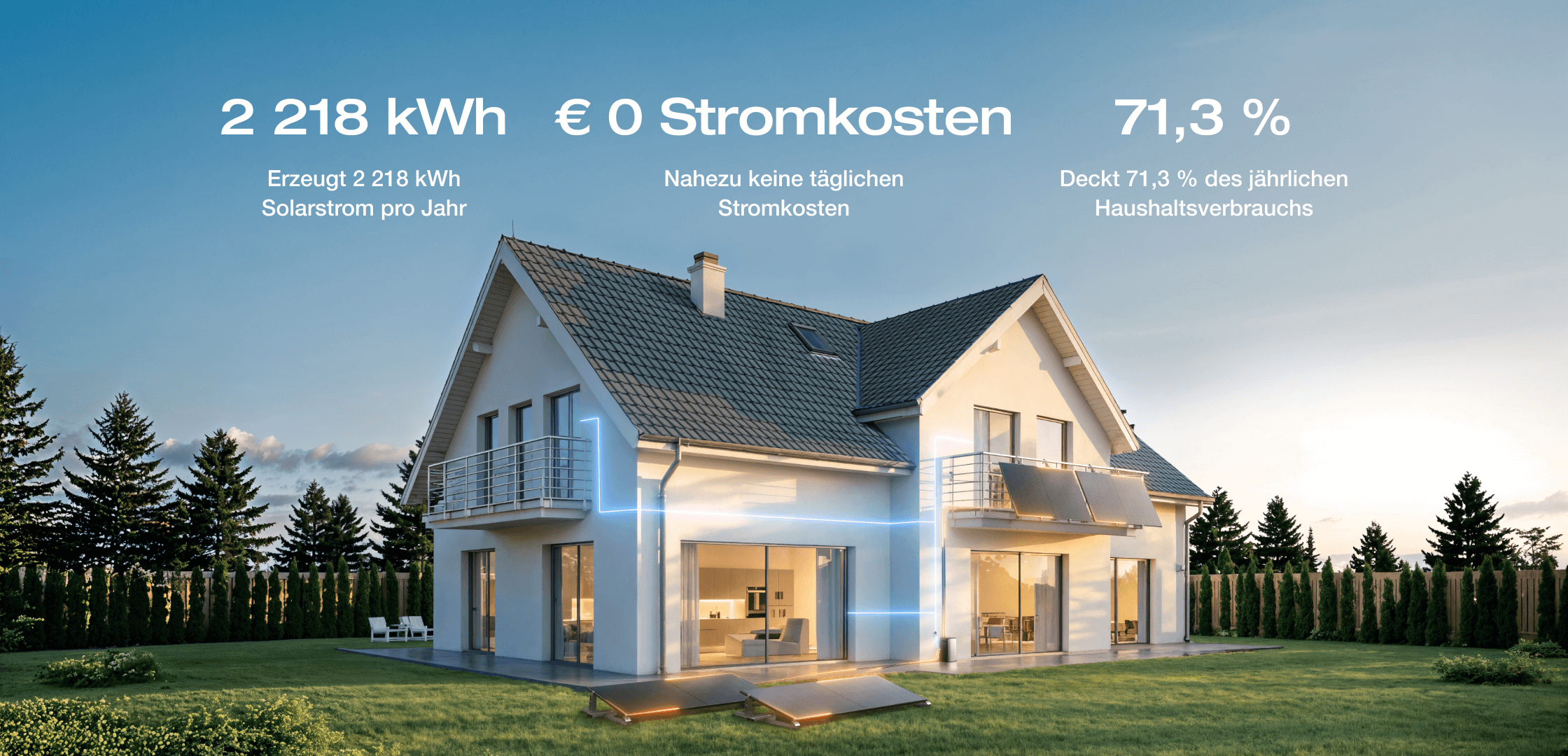 Mit dem Aufgang der Sonne beginnt EcoFlow STREAM Ultra sofort, Solarenergie für Ihr Zuhause zu sammeln und überschüssige Energie automatisch zu speichern. Nachts versorgt die gespeicherte Energie Ihre Geräte, entweder direkt oder über das Stromnetz. Mit einer jährlichen Erzeugung von bis zu 2 218 kWh deckt es 71,3 % des Haushaltsbedarfs und senkt die Stromkosten nahezu auf null¹.
