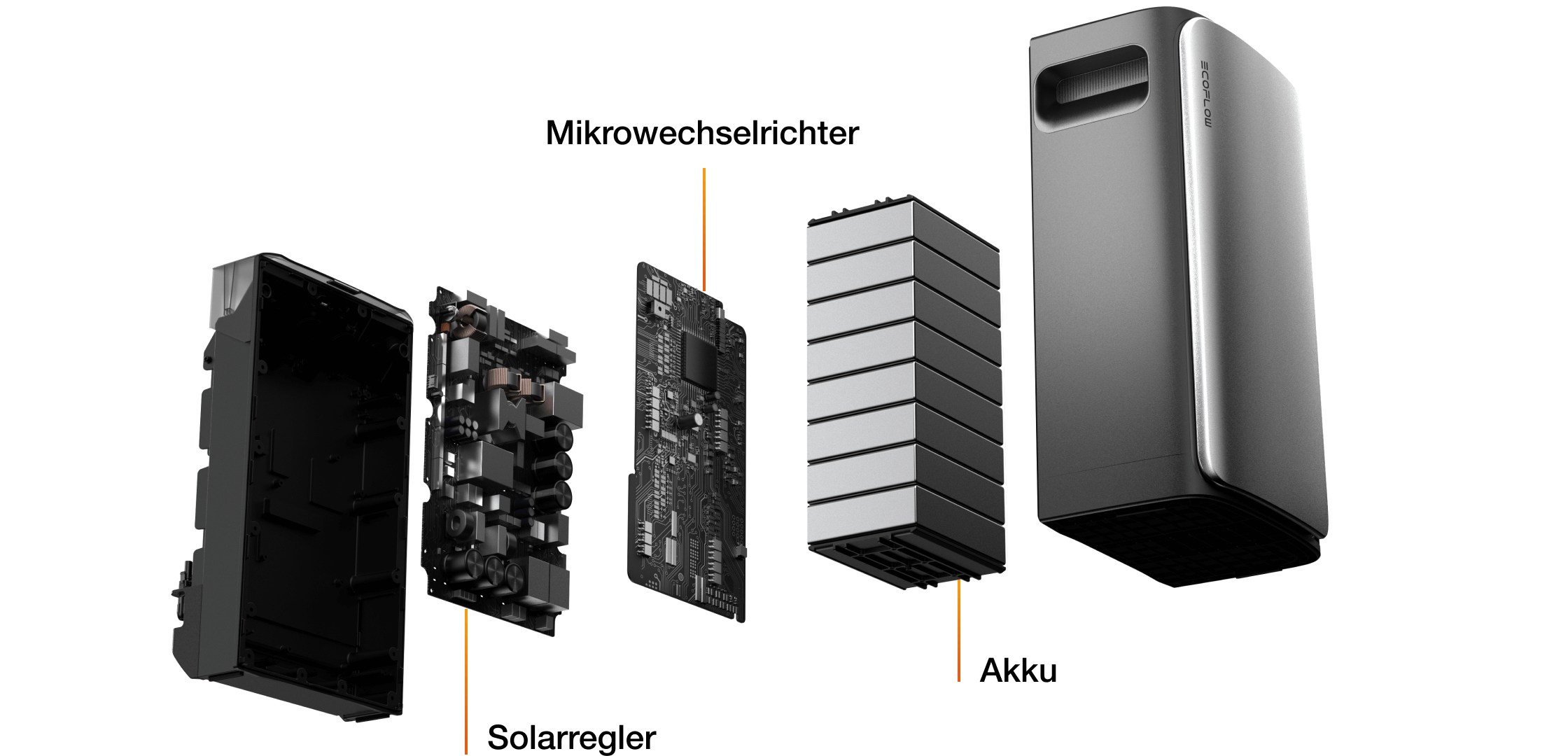 Der smarte Kern des EcoFlow STREAM Balkonkraftwerks – vereint Energiespeicherung und integrierten Mikro-Wechselrichter in einer nahtlosen Lösung.