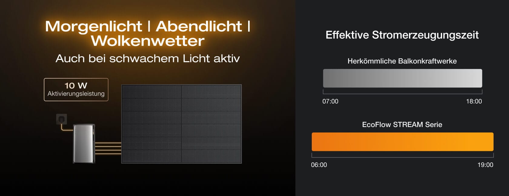 Die STREAM Batterie nutzt fortschrittliche Low-Light-Technologie, um auch bei geringer Sonneneinstrahlung Energie zu gewinnen und ermöglicht so bis zu eine Stunde mehr Solarertrag pro Tag im Vergleich zum Branchendurchschnitt.