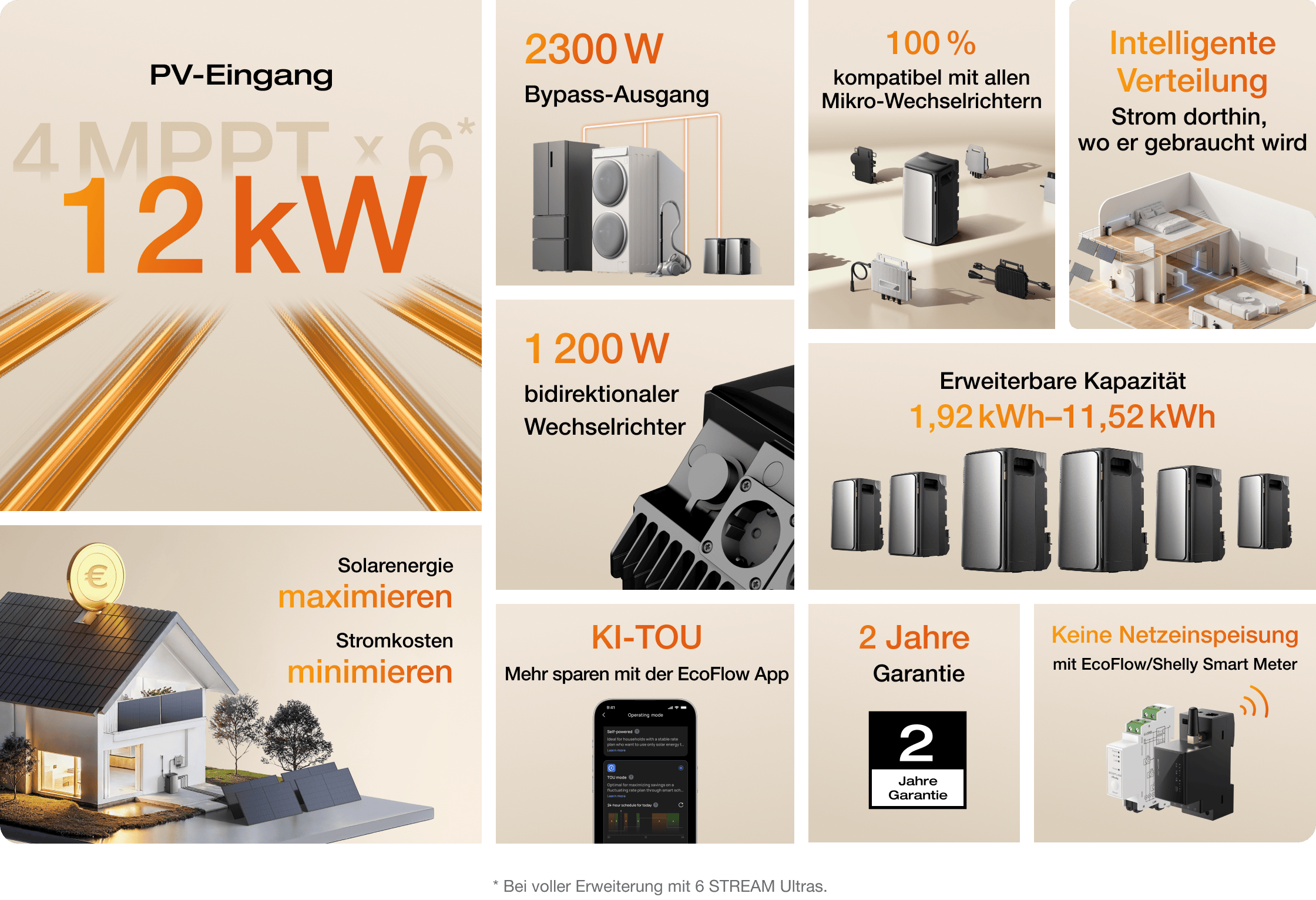 4. Die maximale Kapazität beträgt 6 Einheiten, erweiterbar auf bis zu 11,92 kWh mit EcoFlow STREAM Ultra oder EcoFlow STREAM AC Pro.
